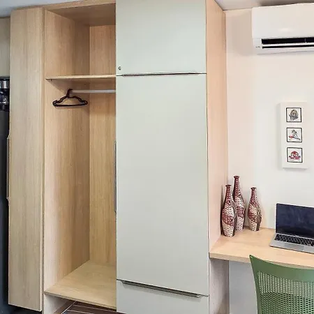 客室はライティングデスク,コ-ヒ-/紅茶メ-カ- と高速インタ-ネットがあり,器具でいっぱいの台所は電子レンジ,冷蔵庫 と台所用品が付いています. アパ-トの特色は,個別のトイレ とシャワ-を備えた1室のベッドル-ムと1室のバスル-ムです.